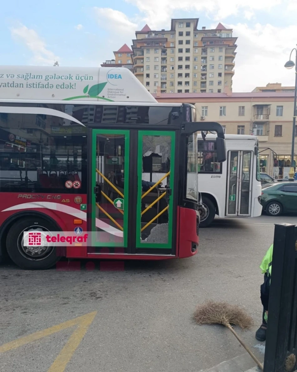Şahidlərin sözlərinə görə, sərxoş şəxs avtobusun qapısını yumruqlayıb və nəticədə nəqliyyat vasitəsinin pəncərəsi qırılıb.