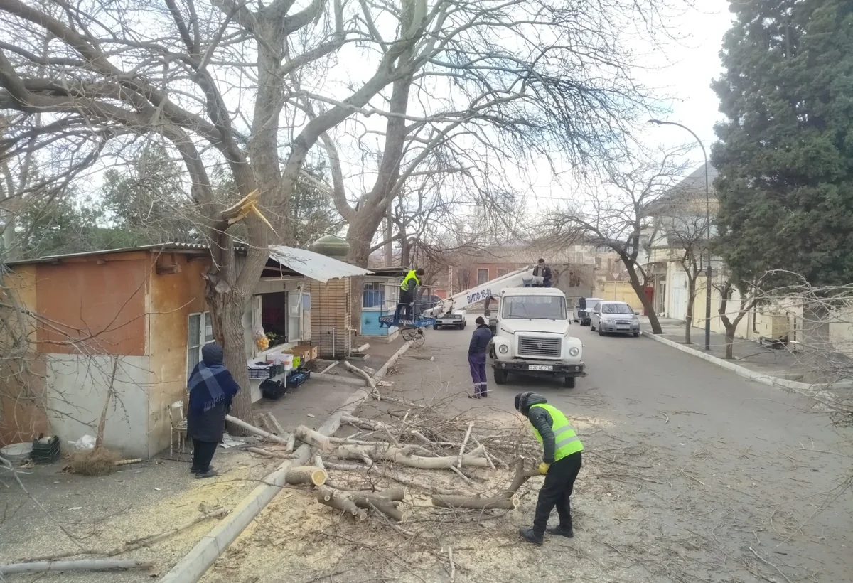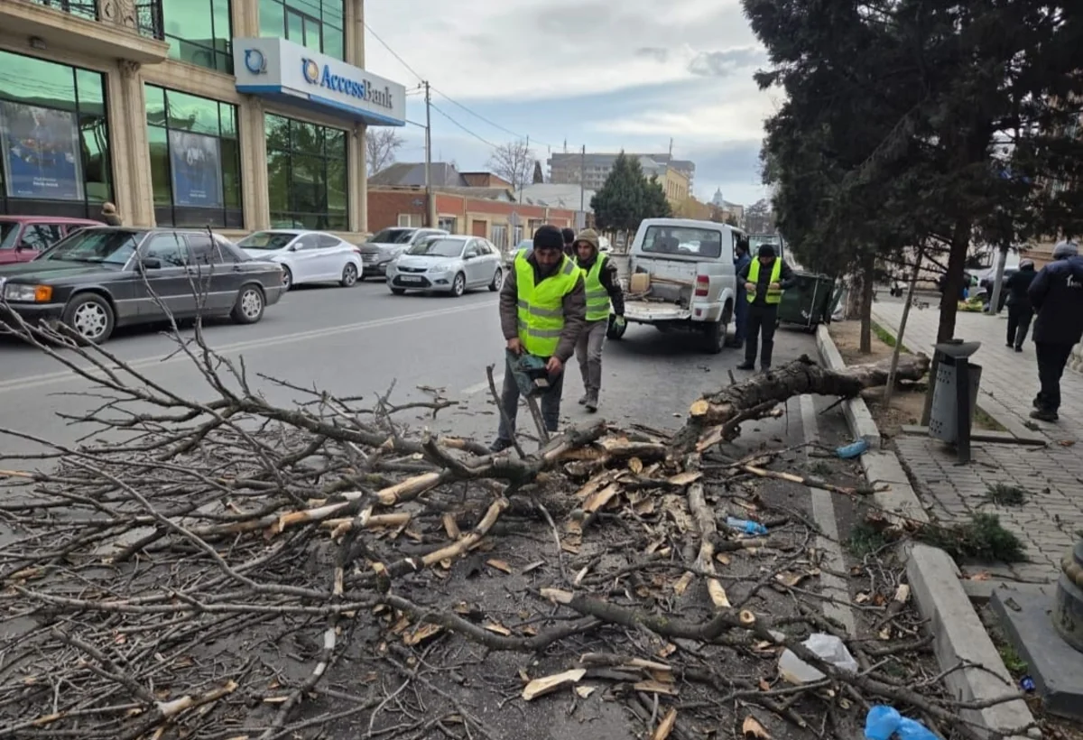 Səhər saatlarından başlayan işlərə MKTİB-nin texnikası cəlb edilərək aşan ağaclar hadisə yerindən yığışdırılır, aşma ehtimalı olan ağaclar isə zərərsizləşdirilir, təhlükə yaradan budaqlar kəsilir.