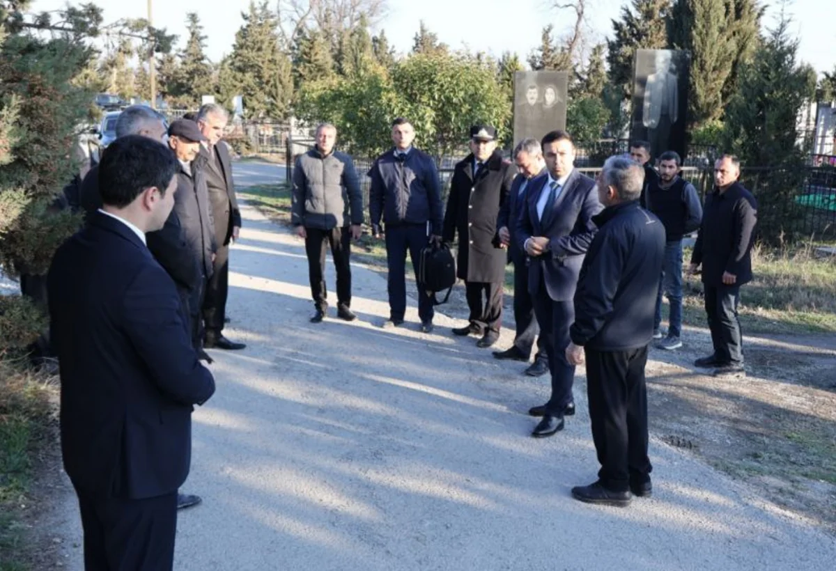 Göyçay Rayon İcra Hakimiyyətinin başçısı Orxan Mürsəlov Potu kənd qəbiristanlığının subasmaya məruz qalmış hissəsinə baxış keçirib.