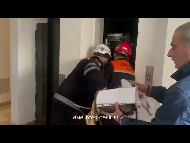 Xilasedicilər tərəfindən xüsusi vasitələrin köməyi ilə liftin qapısı açılaraq köməksiz vəziyyətdə qalan bina sakini xilas edilib.
