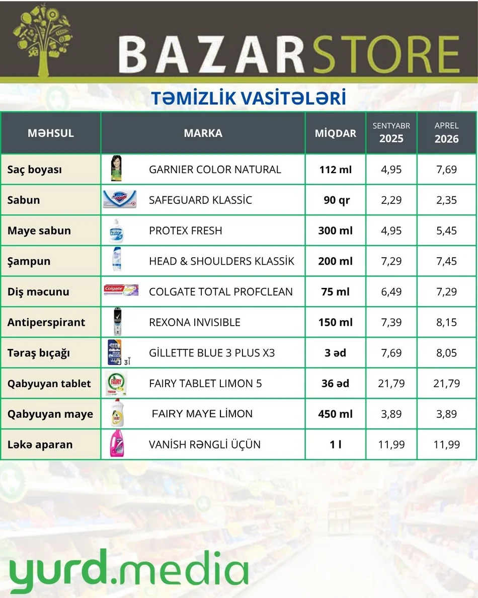 Azərbaycanda əhalinin gündəlik büdcəsinə ciddi təsir göstərən sahələrdən biri də təmizlik və məişət gigiyenası vasitələrinin qiymətləridir.
