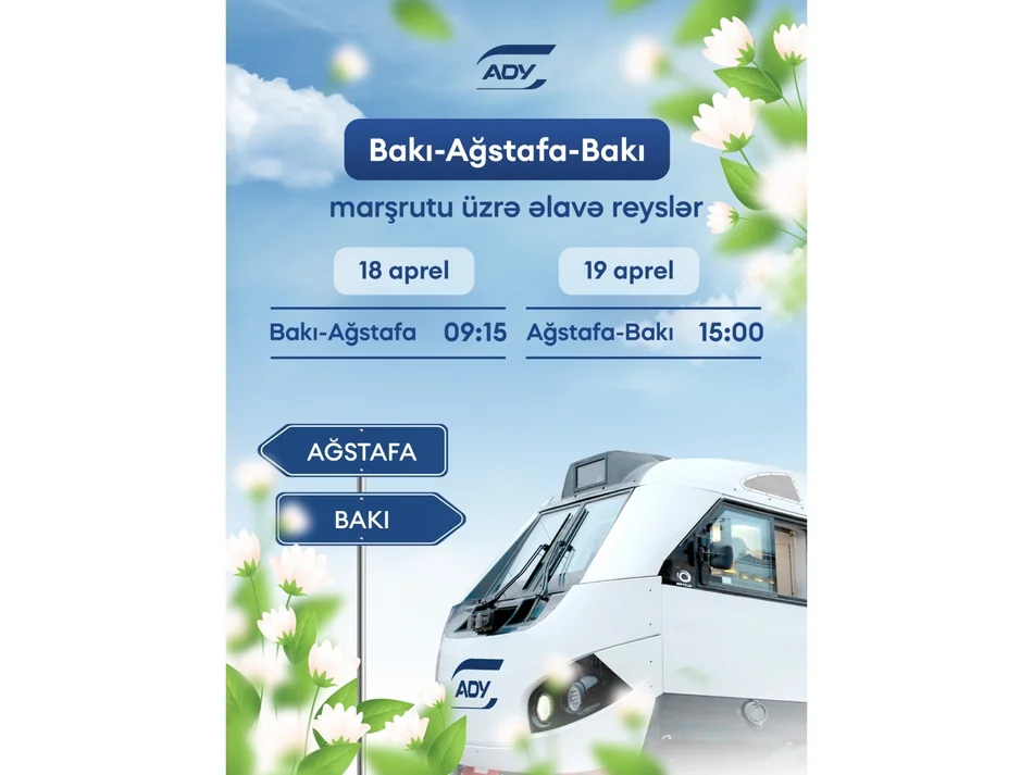ADY-dən Yurd.Media-ya bildirilib ki, sərnişin tələbatını təmin etmək məqsədilə 18 və 19 aprel tarixlərində Bakı-Ağstafa-Bakı marşrutu üzrə əlavə qatar reysləri təyin edib.