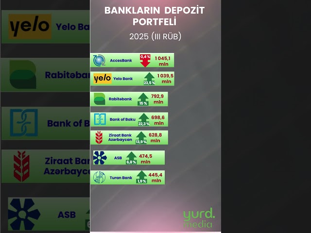 Son 1 ildə 22 bankdan 7-nin depozit portfeli azalıb. Ən çox azalma “Azərbaycan Beynəlxalq Bankı”nda (10,7%), ən az azalma isə “Access Bank”da (0,4%) qeydə alınıb. 1 bankın – “Unibank”ın depozit portfeli demək olar ki, “yerində sayıb”. 14 bankın isə depozit portfeli artıb. Ən yüksək dinamika “Azər-Türk Bank”da (28%), ən aşağı dinamika isə İran Milli Bankının Bakı filialında (0,2%) qeydə alınıb.