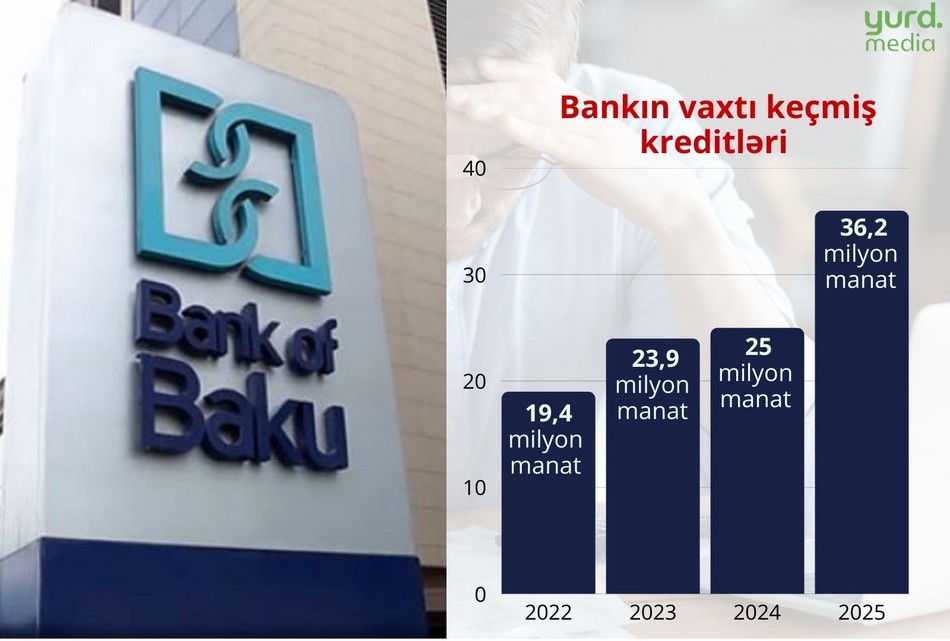 Qeyd edək ki, “Bank of Baku”da vaxtı keçmiş kreditlərin artım dinamikası artıq 3 ildir ki müşaiyət olunur - belə ki, 2023-cü ildə 22,7%, 2024-cü ildə isə 4,5% çoxalmışdı. Təbii ki, 2025-ci ildəki problemli kredit portfelinin təxminən yarısı qədər olan artım digər illəri "geridə qoydu".