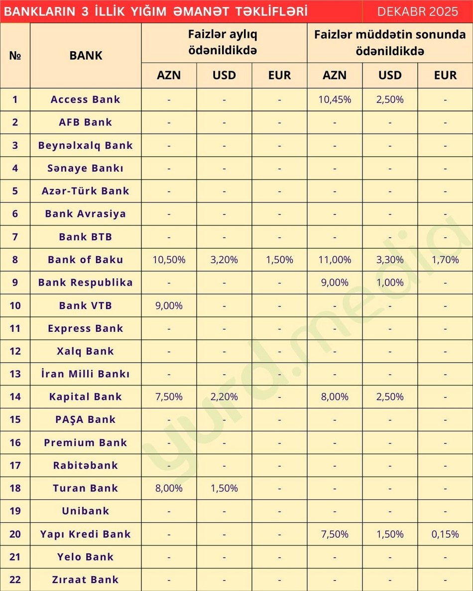 Yurd.Media Azərbaycan banklarının 3 illik yığım əmanəti təkliflərini araşdırıb.