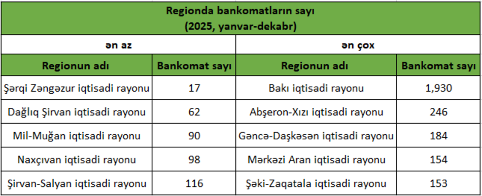 2025-ci ilin yanvar-dekabr aylarında Azərbaycanda fəaliyyət göstərən bankomatların ümumi sayı 3 min 572 ədəd təşkil edib.