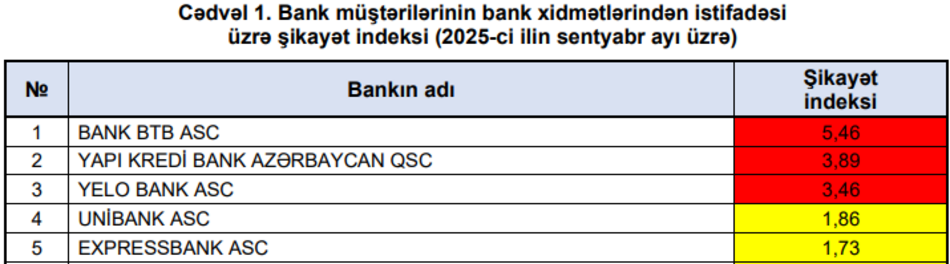 Azərbaycanda növbəti dəfə ən çox narazılıq olunan banklar açıqlanıb.