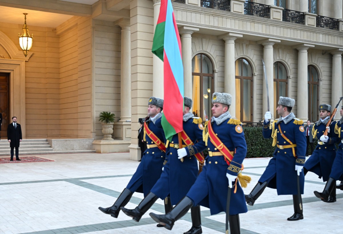 Fəxri qarovul dəstəsi hərbi marşın sədaları altında Azərbaycan Prezidenti İlham Əliyevin və ABŞ-nin Vitse-prezidenti Ceyms Devid Vensin qarşısından keçib.
