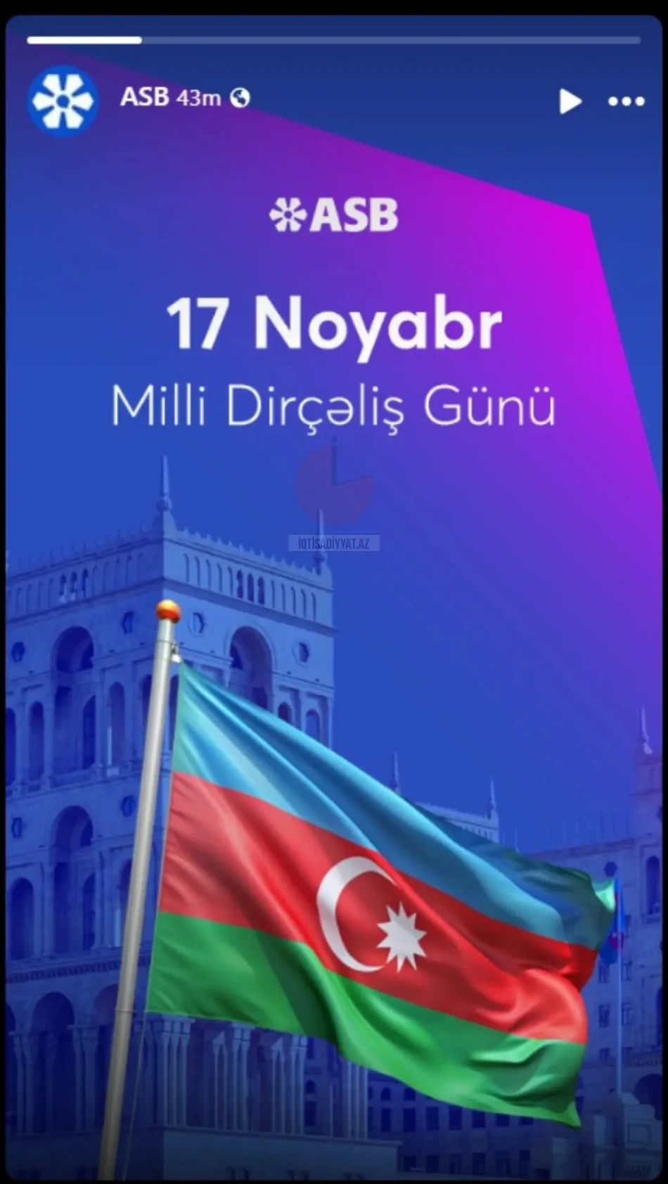 Yurd.Media "İqtisadiyyat.az"a istinadən xəbər verir ki, Azərbaycan Sənaye Bankı ASC 17 Noyabr - Milli Dirçəliş Günü münasibətilə sosial şəbəkə səhifələrində etdiyi paylaşımda kobud səhvə yol verib.