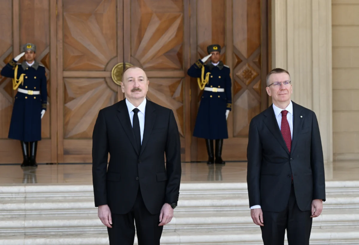 Yurd.Media xəbər verir ki, hər iki ölkənin Dövlət bayraqlarının dalğalandığı meydanda Latviya Prezidentinin şərəfinə fəxri qarovul dəstəsi düzülmüşdü.