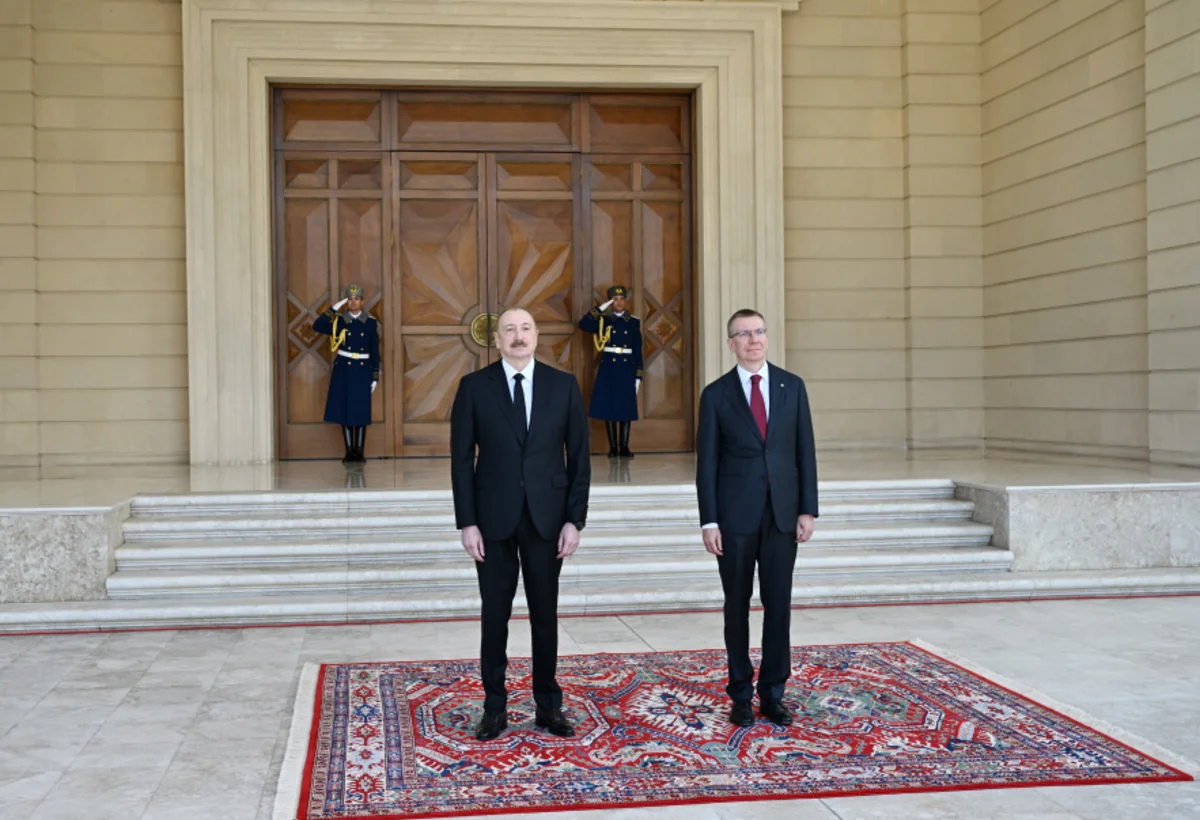 Azərbaycan Prezidenti İlham Əliyev Latviya Prezidenti Edqars Rinkeviçsi qarşıladı.