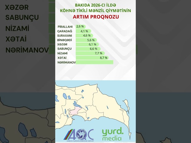 Azərbaycan Qiymətləndiricilər Cəmiyyətindən (AQC) Yurd.Media-ya verilən məlumata görə, ən böyük artım paytaxtın Yasamal (təxminən 14%), Nəsimi (təxminən 13,8%), Səbail (təxminən 13,3%) və Nərimanov (təxminən 12,8%) rayonlarında olacaq.