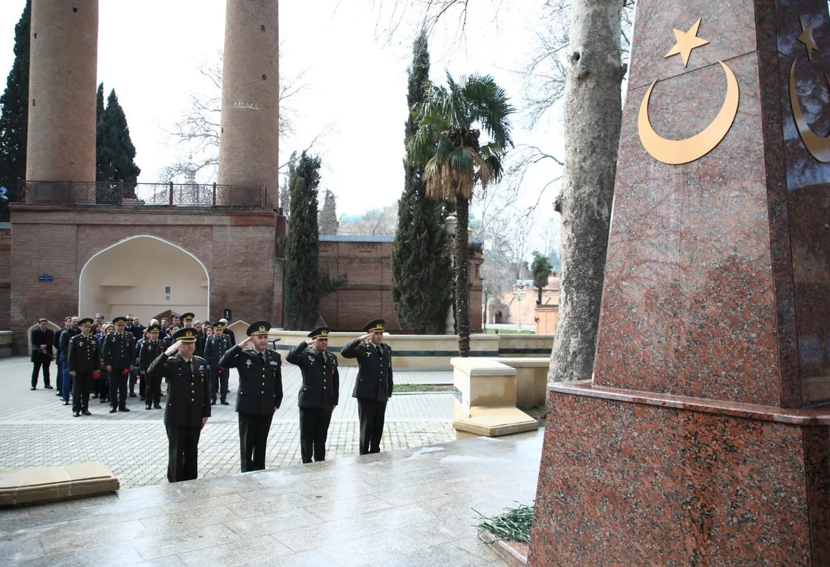Əvvəlcə rəsmilər Qafqaz İslam Ordusunun şəhidlərinin xatirəsinə ucaldılmış abidəni ziyarət edərək önünə tər güllər düzüblər.