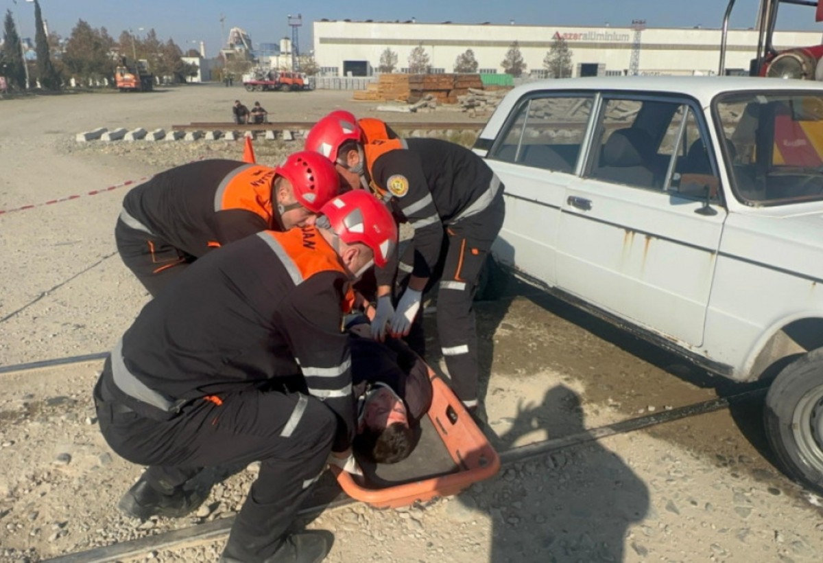 Təlim zamanı xilasedicilər şərti nəqliyyat qəzası zamanı “deformasiyaya uğramış” nəqliyyat vasitəsindən “zərərçəkmişləri” təxliyə edərək, onlara “təxirəsalınmaz ilkin yardım” göstərib və təcili tibbi yardım briqadasına təhvil veriblər.