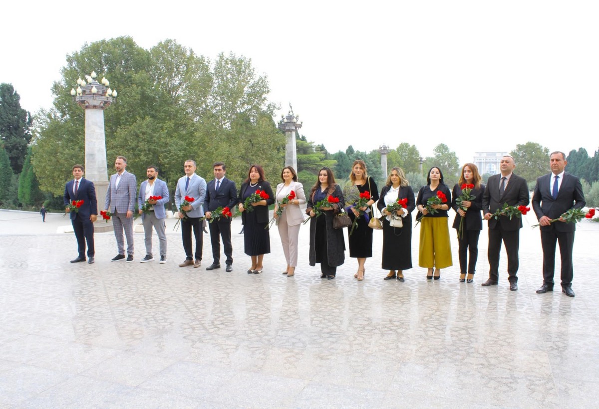 Yurd.Media xəbər verir ki, tədbirdən əvvəl rəsmi qonaqlar və iştirakçılar Ümummilli Lider Heydər Əliyevin heykəlini ziyarət edərək, önünə gül dəstələri düzüblər.