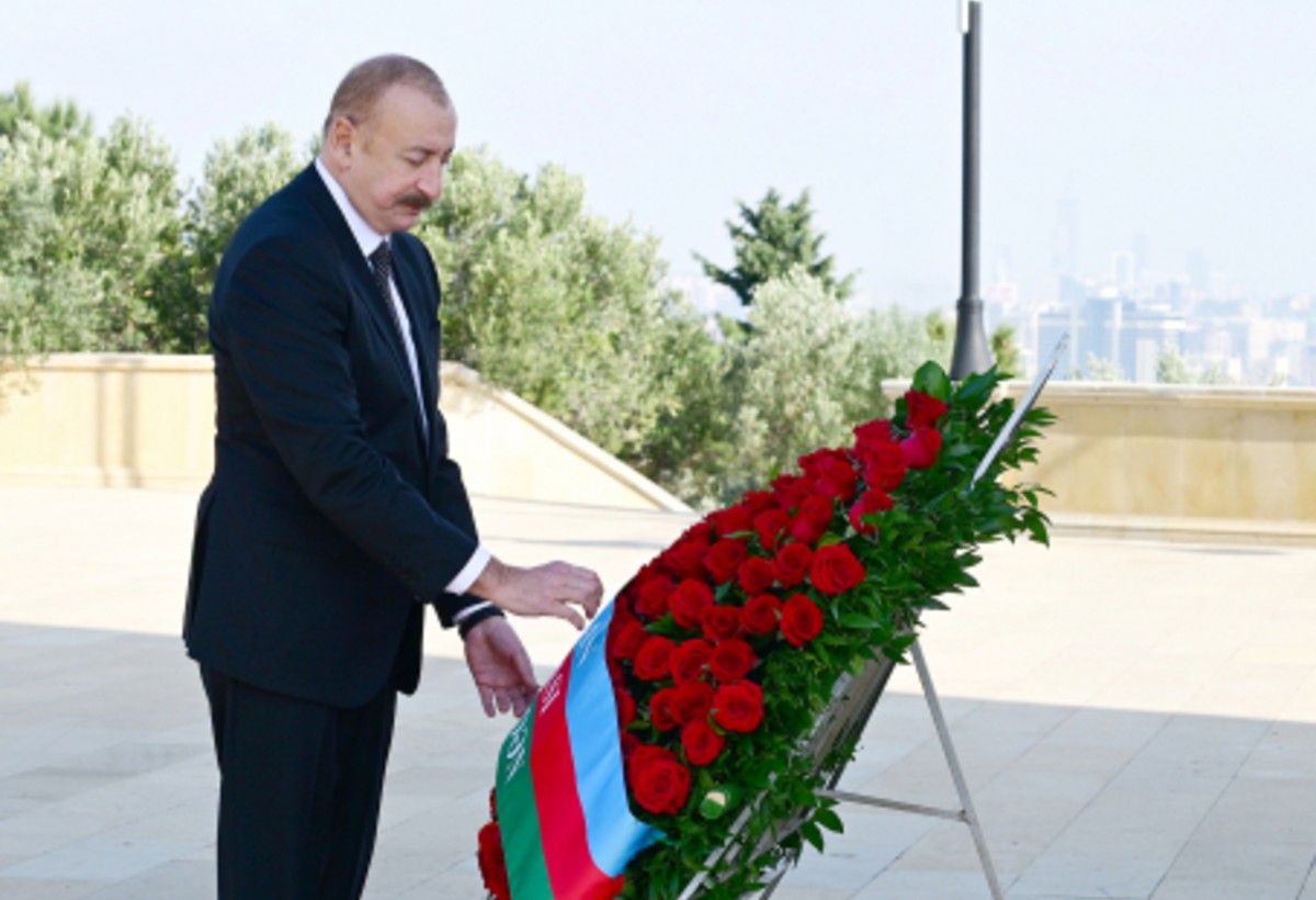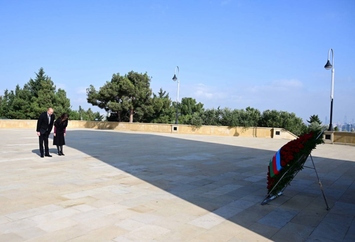 Dövlətimizin başçısı “Əbədi məşəl” abidəsinin önünə əklil qoydu.