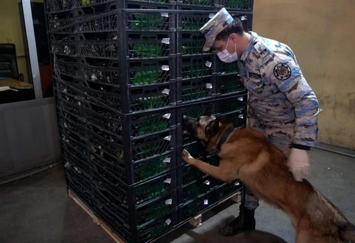 Stasionar rentgen qurğusunda baxış zamanı şübhəli cizgilər müşahidə edildiyindən yük avtomobilinə kinoloji xidmət itinin tətbiqi ilə gömrük yoxlaması həyata keçirilib.