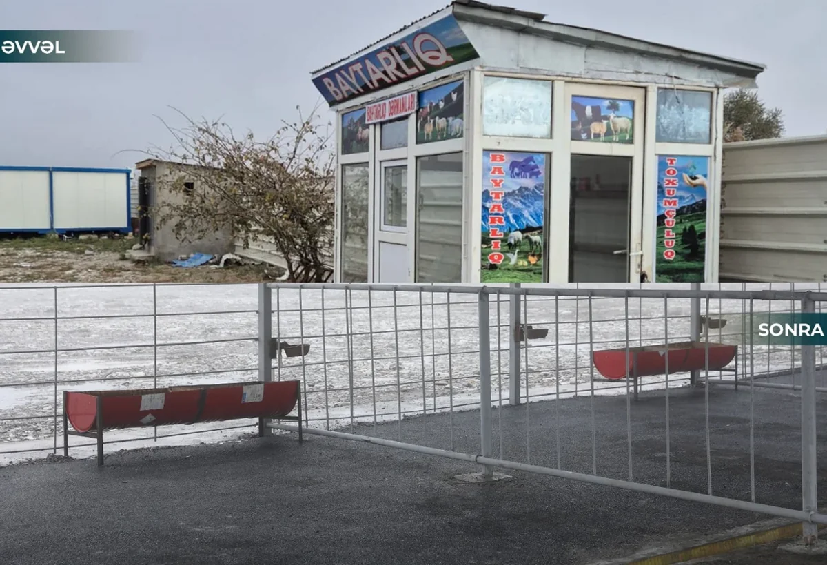 Bildirilib ki, bazar ərazisi asfaltlanıb, giriş və çıxış qapısında dezbaryerlər, həmçinin yem anbarı, iri və xırdabuynuzlu heyvanların satış sahələri yenidən qurulub. Xəstə heyvanların digər heyvanlardan təcrid olunaraq saxlanılması üçün xüsusi izolyatorlar tikilib. Bazar ərazisində baytarlıq nəzarətinin təmin edilməsi məqsədilə baytar həkimin fəaliyyəti üçün nəzarət otağı yaradılıb.