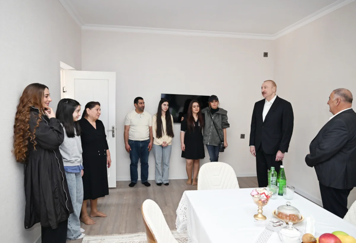 Görülmüş işlərlə tanışlıqdan sonra Prezident İlham Əliyev, birinci xanım Mehriban Əliyeva və qızları Arzu Əliyeva kəndə köçmüş sakin Rizvan İbrahimovun evində oldular və söhbət etdilər.