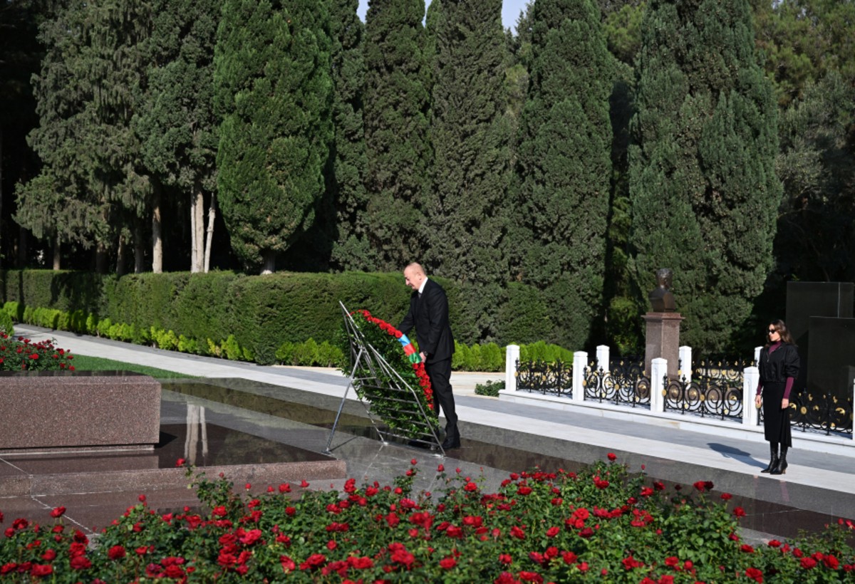 Azərbaycan Respublikasının Prezidenti İlham Əliyev və birinci xanım Mehriban Əliyeva Vətən müharibəsində Qələbənin beşinci ildönümü münasibətilə Fəxri xiyabanda Ümummilli Lider Heydər Əliyevin məzarını ziyarət ediblər.