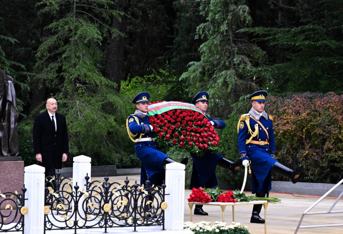 Prezident İlham Əliyev Ulu Öndərin məzarı önünə əklil qoyub.