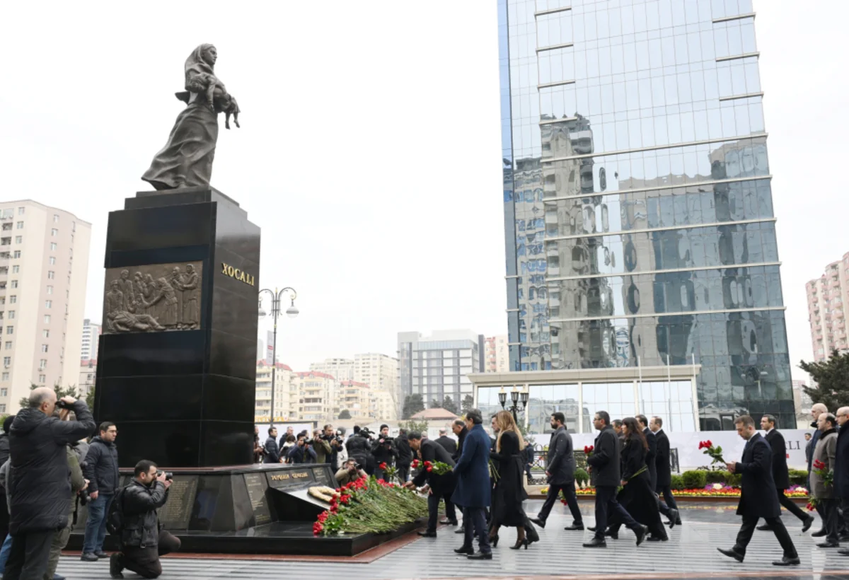 34 il əvvəl Fevralın 25-dən 26-na keçən gecə baş verən faciə qurbanlarının xatirəsinə Bakının Xətai rayonunda ucaldılan Xocalı soyqırımı abidəsinin ətrafında səhər saatlarından başlayaraq insan axını ara vermir.
