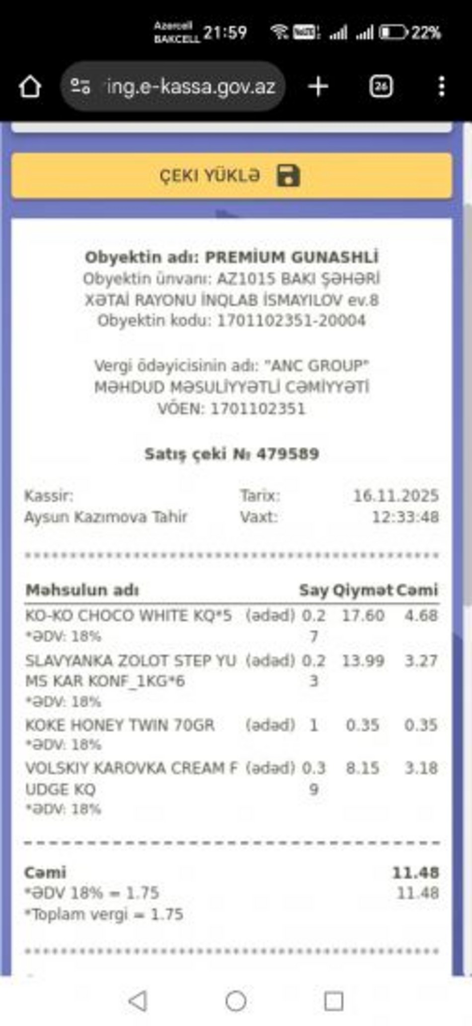 Qeyd edək ki, müştərilərdən birinin sosial mediada paylaşdığı şikayətə görə, Xətai rayonu İnqilab İsmayılov küçəsində yerləşən “Rahat” marketdən aldığı 1 kiloqram “Slavyanka Zolotoy Step”ə 13 manat 99 qəpik ödəyib və evə gəldikdən sonra məhsulun qurdlu olduğunu görüb.