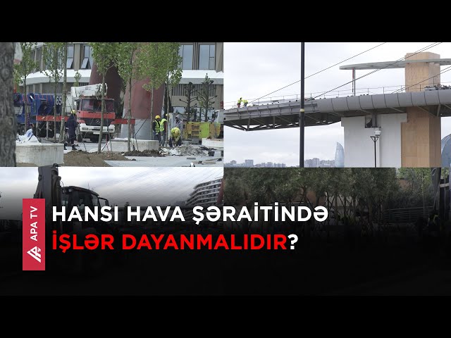 Milli Hidrometeorologiya Xidmətinin sarı xəbərdarlıq yaymasına və təhlükəli hava şəraitinə baxmayaraq, Bakının bir sıra tikinti obyektlərində işlər davam etdirilir.