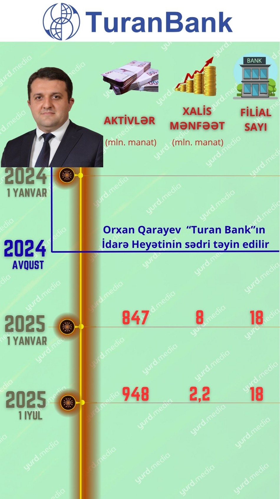 Yurd.Media-nın “O banka sədr gələndən sonra...” adlı yeni layihəsinin növbəti qonağı “Turan Bank” ASC-nin İdarə Heyətinin (İH) sədri Orxan Qarayevdir.