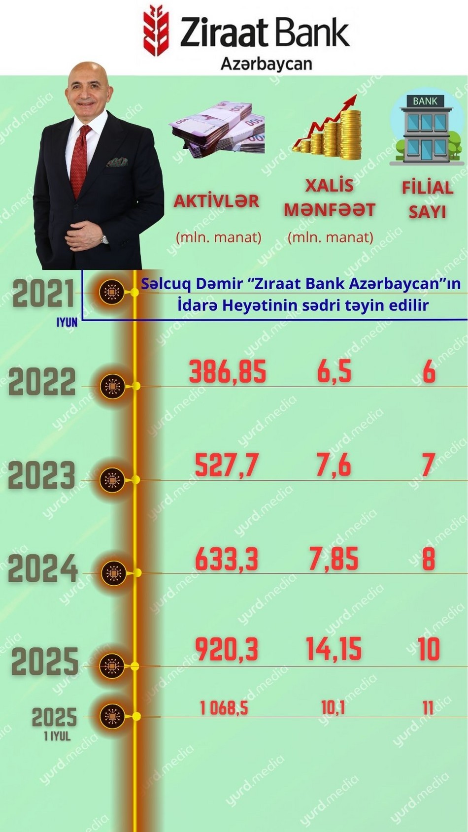Yurd.Media-nın “O banka sədr gələndən sonra...” adlı layihəsinin növbəti qonağı “Zıraat Bank Azərbaycan” ASC-nin İdarə Heyətinin (İH) sədri Səlcuq Dəmirdir.