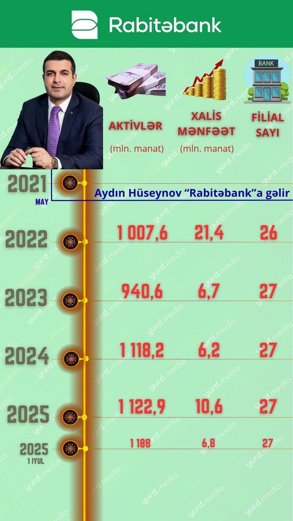 Yurd.Media-nın “O, banka sədr gələndən sonra...” adlı layihəsinin növbəti qonağı “Rabitəbank” ASC-nin İdarə Heyətinin (İH) sədri Aydın Hüseynovdur.