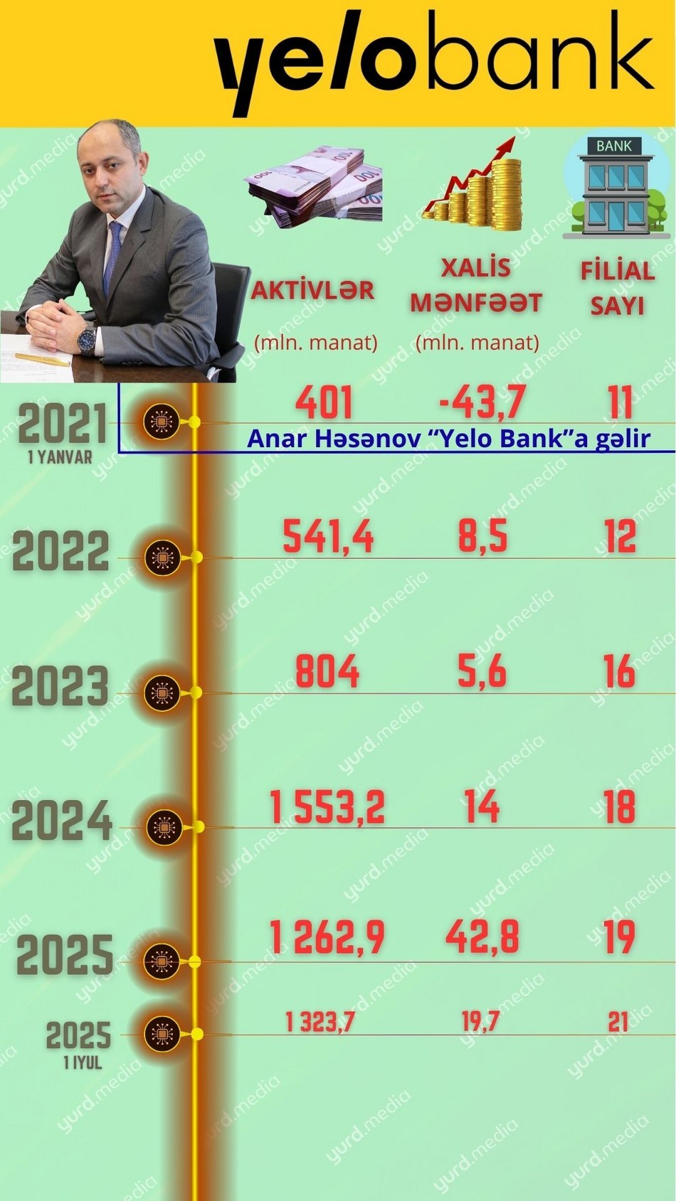 Yurd.Media-nın “O, banka sədr gələndən sonra...” adlı layihəsinin növbəti qonağı “Yelo Bank” ASC-nin İdarə Heyətinin (İH) sədri Anar Həsənovdur.