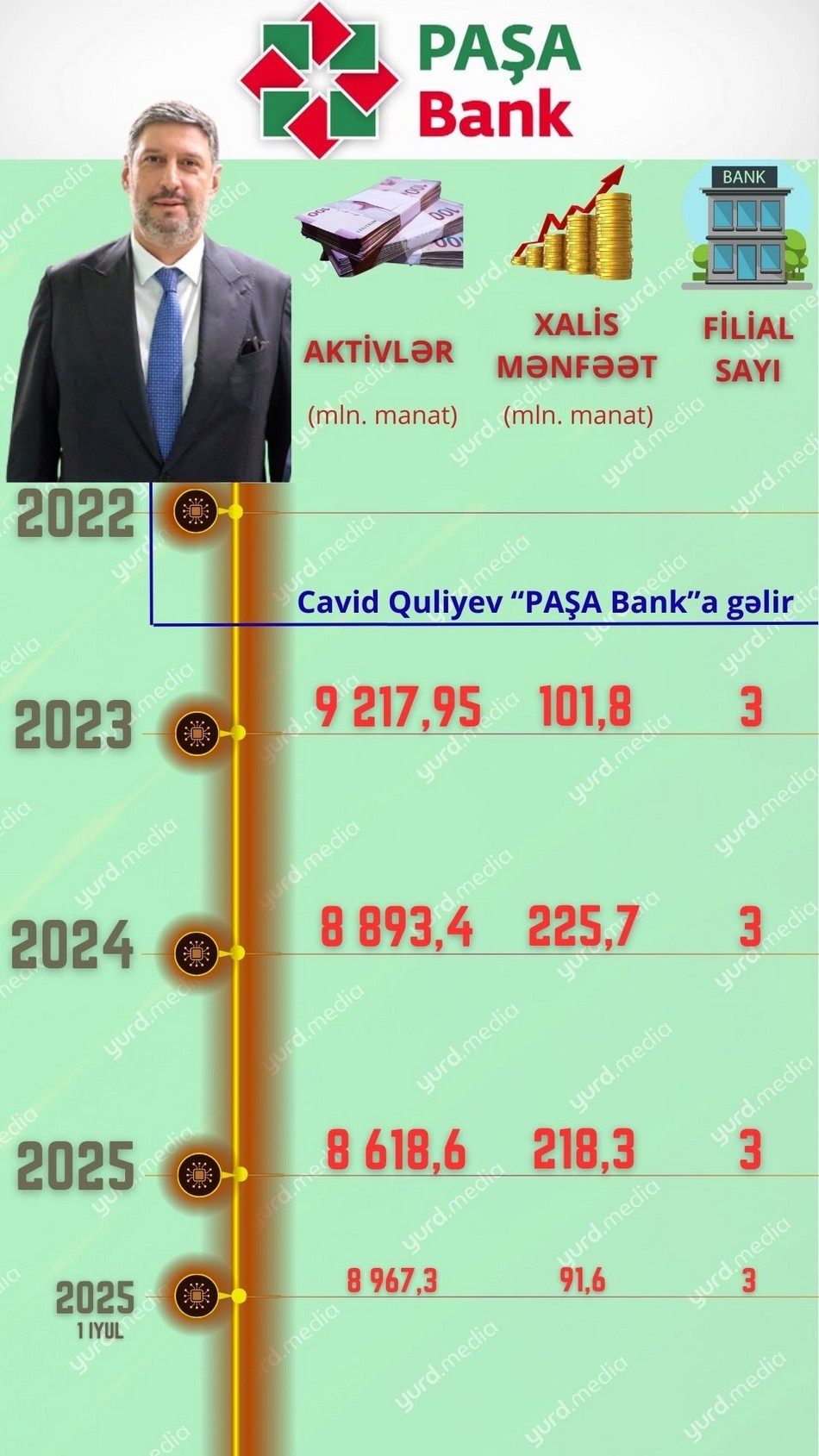 Yurd.Media-nın “O, banka sədr gələndən sonra...” adlı layihəsinin növbəti qonağı “PAŞA Bank” ASC-nin İdarə Heyətinin (İH) sədri Cavid Quliyevdur.