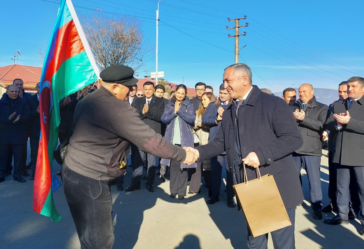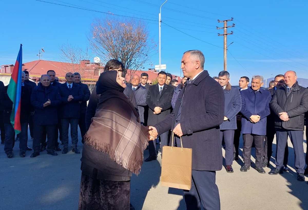 Kəndə çatan ailələrə evlərinin açarları təqdim olunub.