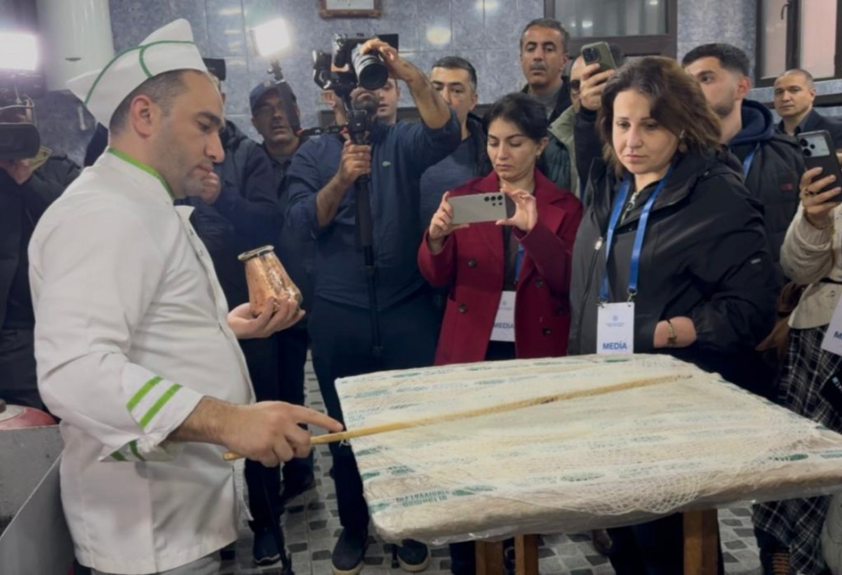 Media nümayəndələri, həmçinin Şəkidə sənətkarlarla görüşüb, onların iş prosesi ilə yaxından tanış olub, məşhur Şəki halvasının hazırlanması prosesini izləyiblər. Halvaçı Xosrov Qafarov bu şirniyyat növünün hazırlanmasındakı incəliklər barədə ətraflı məlumat verib. Şəkinin ənənəvi dulusçuluq sənət növü ilə tanışlıq zamanı isə dulusçu Əhəd Məmmədov media nümayəndələrinə öz emalatxanasında hazırladığı məhsulların çeşidindən, təyinatından danışıb.