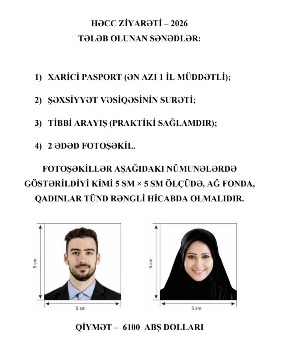 Vətəndaşların çoxsaylı müraciətlərini nəzərə alaraq, Qafqaz Müsəlmanları İdarəsi (QMİ) Həcc ziyarətinə getmək istəyən dindarlar üçün sənədlərin qəbuluna başlayıb. Ziyarət vahid formada təşkil olunacaq və hava nəqliyyatı ilə ilə həyata keçiriləcək.