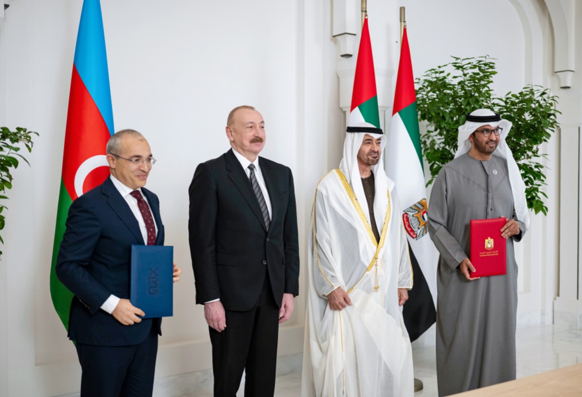 Sonra Azərbaycan və BƏƏ prezidentlərinin iştirakı ilə “Cənub Qaz Dəhlizi” QSC-də İqtisadiyyat Nazirliyinə məxsus qeyri-nəzarət payının müəyyən hissəsinin Əbu-Dabi Milli Neft Şirkətinin investisiya qolu olan XRG şirkətinə satışı ilə bağlı alqı-satqı müqaviləsinə dair sənəd imzalandı.