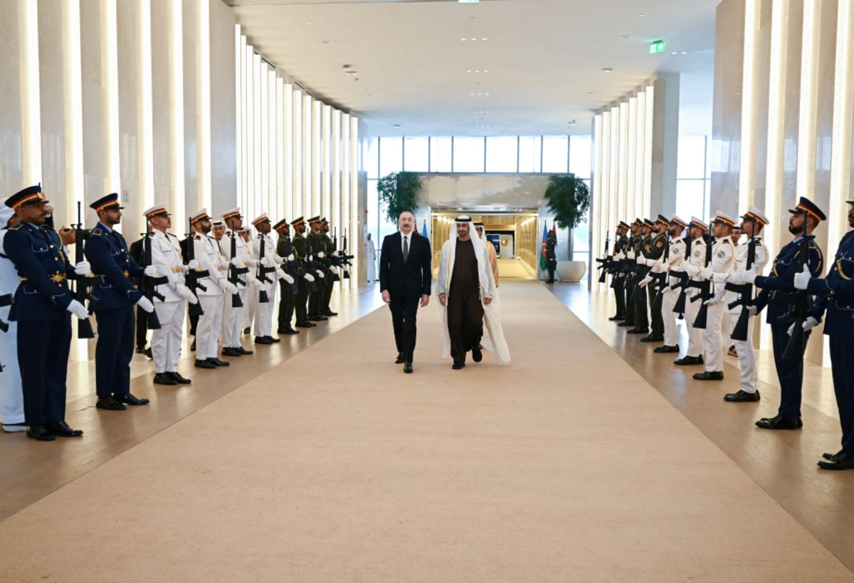 Prezident İlham Əliyevi Birləşmiş Ərəb Əmirliklərinin Prezidenti Şeyx Məhəmməd bin Zayed Al Nəhyan qarşıladı.