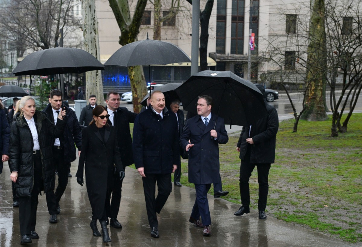 Serbiya Respublikasında rəsmi səfərdə olan Azərbaycan Respublikasının Prezidenti İlham Əliyev və birinci xanım Mehriban Əliyeva fevralın 15-də Belqraddakı Taşmaydan parkında Ümummilli Lider Heydər Əliyevin və görkəmli serb yazıçısı Milorad Paviçin abidələrini ziyarət ediblər.